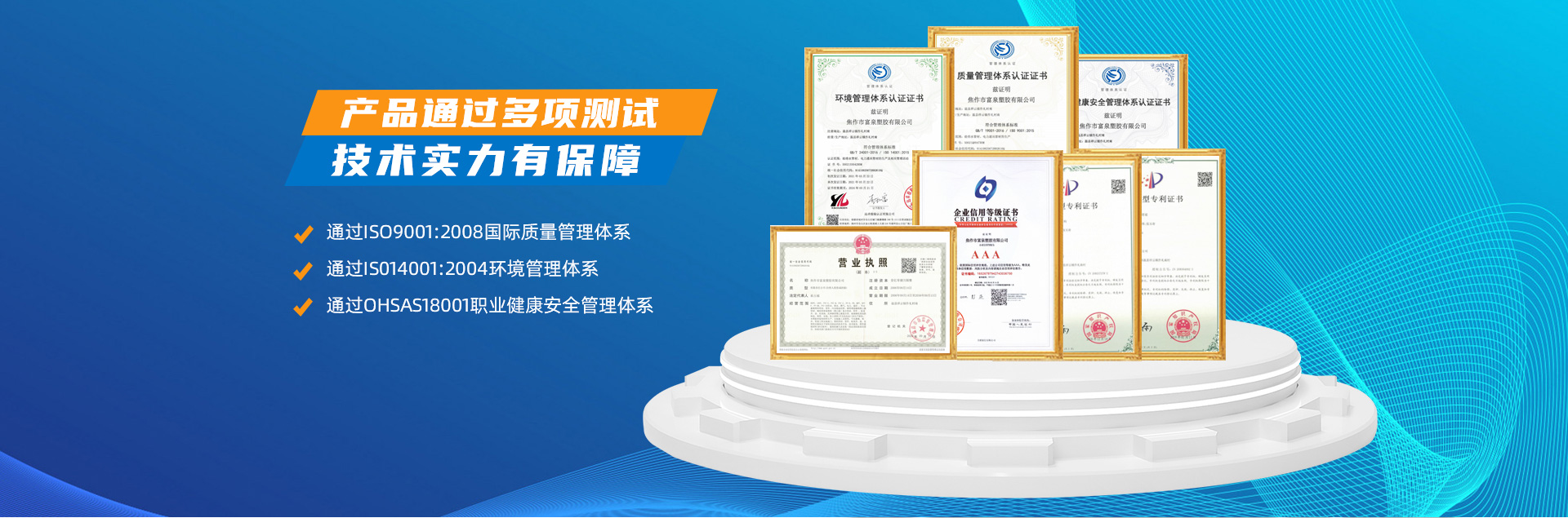 - 焦作市富泉塑膠有限公司,創(chuàng)立于1995年,是一家集研發(fā)、設計、生產(chǎn)、銷售為一體的大型管材企業(yè)。公司位于太極故里、黃河之濱一一河南焦作溫縣。公司占地128畝,現(xiàn)有職工210余人,其中具有中技術職稱的19人。生產(chǎn)、檢驗設備58臺(套),包括PVC實壁管生產(chǎn)線11套、PE實壁管生產(chǎn)線12套、HDPE雙壁波紋管生產(chǎn)線6套、PVC雙壁波紋管生產(chǎn)線5套,檢驗設備14臺(套)。主要產(chǎn)品有:Φ20mm-630mm、各種壓力規(guī)格的PVCU、PVC-M、PE給水管材,PVC-U節(jié)水灌溉管材,HDPE燃氣和礦用管材,DN200-800mm的HDPE、PVC雙壁波紋管及各種噴灌、滴灌工程材料。承接大中型市政供排水、飲水安全及節(jié)水灌溉等工程?! 「蝗苣z公司重視產(chǎn)品的質量、安全、環(huán)保和節(jié)能,在同行業(yè)中率先完成了“新華節(jié)水產(chǎn)品認證”,全方面通過ISO9001:2008國際質量管理體系、IS014001:2004環(huán)境管理體系和OHSAS18001職業(yè)健康安全管理體系的一體化導入,并建立起規(guī)范的現(xiàn)代企業(yè)管理體系。公司以“質量”為先導,采用質量跟蹤、多環(huán)節(jié)把關的方法,組建具有行業(yè)水準的企業(yè)技術檢測中心,常年委托水利部節(jié)水灌溉設備檢測中心、河南省產(chǎn)品質量監(jiān)督檢驗院對產(chǎn)品跟蹤檢測,并由中國人民保險公司承保產(chǎn)品質量。公司連續(xù)多年被河南省水利廳確定為“安全飲水設備、節(jié)水灌溉設備”定點生產(chǎn)企業(yè),并獲得“中國名優(yōu)產(chǎn)品”“質量、服務、信譽AAA企業(yè)”“河南省**產(chǎn)品”“河南省水利企業(yè)”“河南省守合同、重信用企業(yè)”等榮譽稱號?! 「蝗苣z公司堅持“用戶為上”的服務理念,長期以來,全方面關注客戶價值,不斷提升服務水平。服務隊伍常年為客戶的產(chǎn)品設計、施工、安裝提供合理的方案和全程細致、周到、**、快捷的技術服務。公司自成立以來,一直堅持以人為本的宗旨,塑造企業(yè)形象,并致力于新產(chǎn)品的開發(fā),憑借雄厚的技術開發(fā)能力,先進的工藝制造流程,嚴格的質量管理保證體系,優(yōu)良的售后服務網(wǎng)絡,已成為河南省大的飲水、灌溉及排水管材設備制造商。產(chǎn)品暢銷全國,而且還以公司雄厚的綜合實力在業(yè)界中占據(jù)著重要的地位。